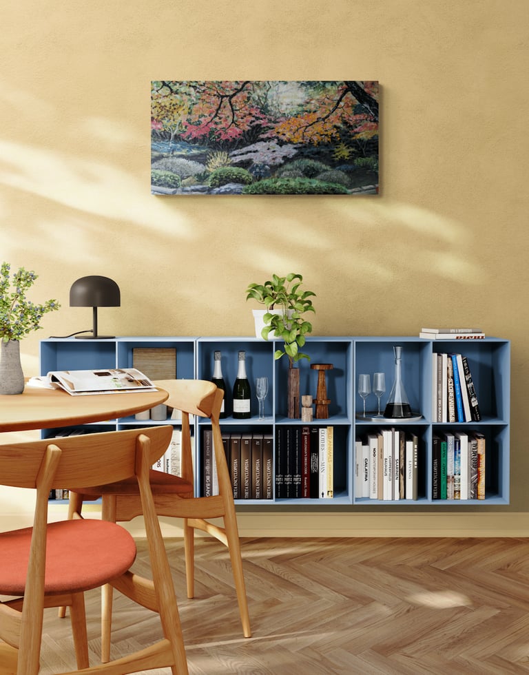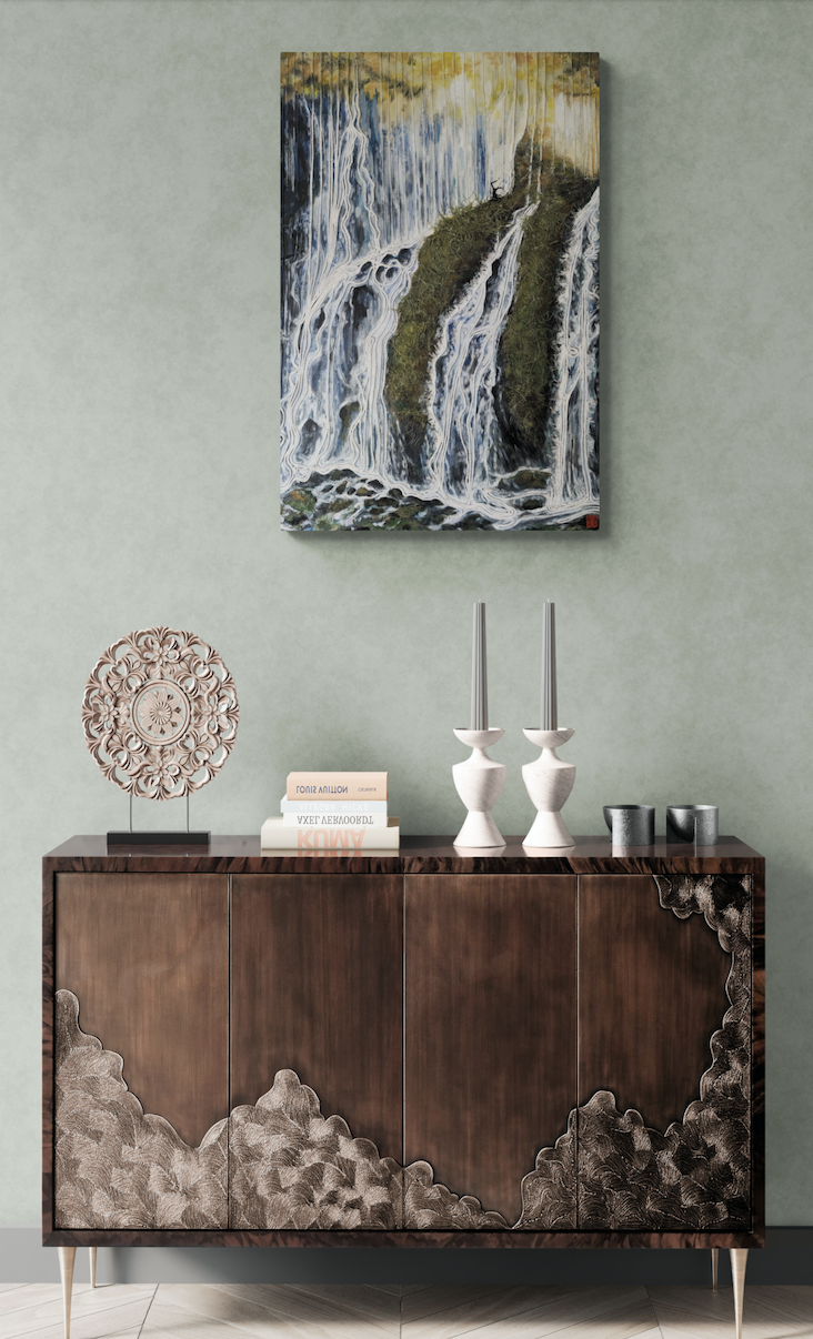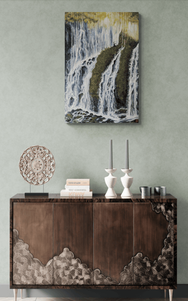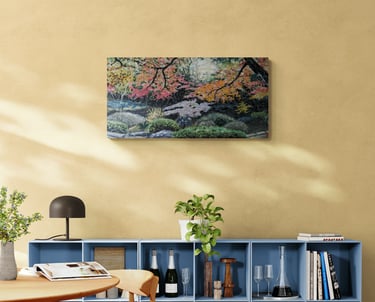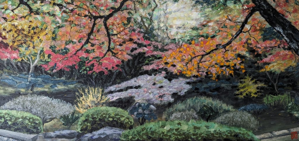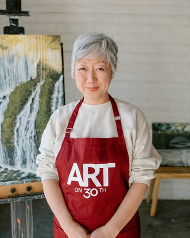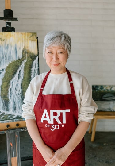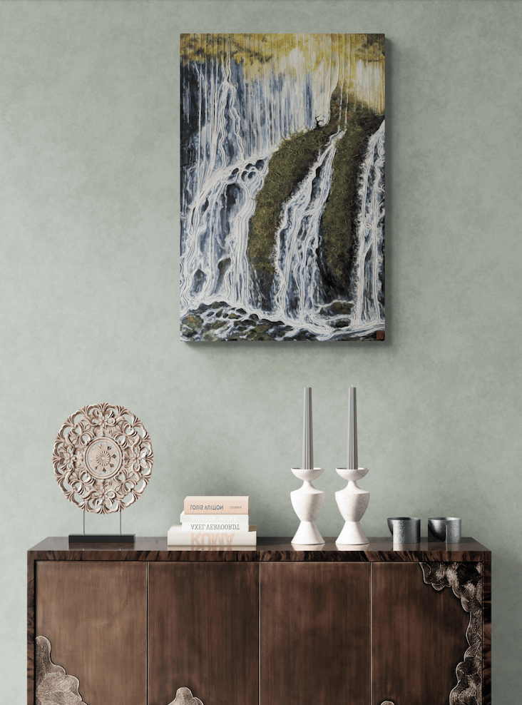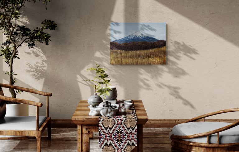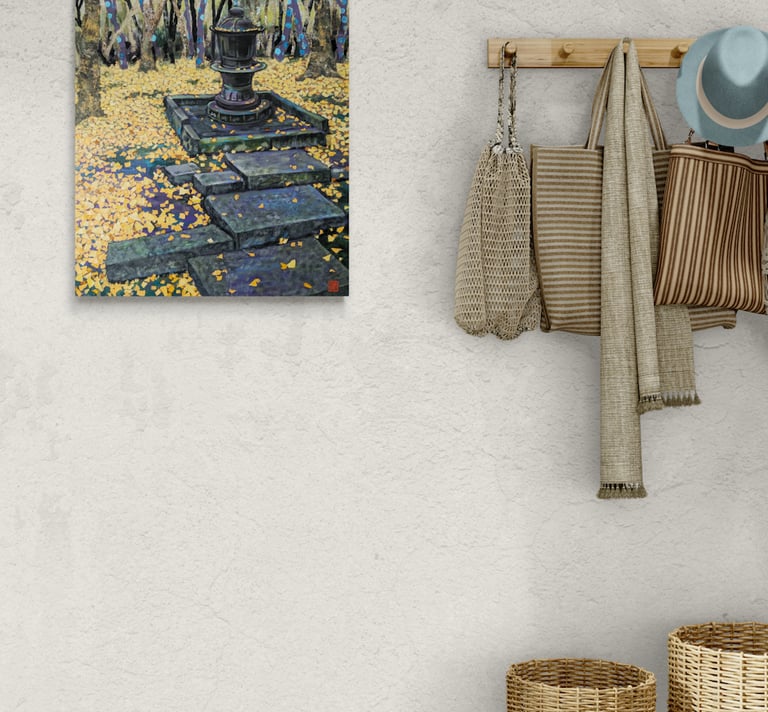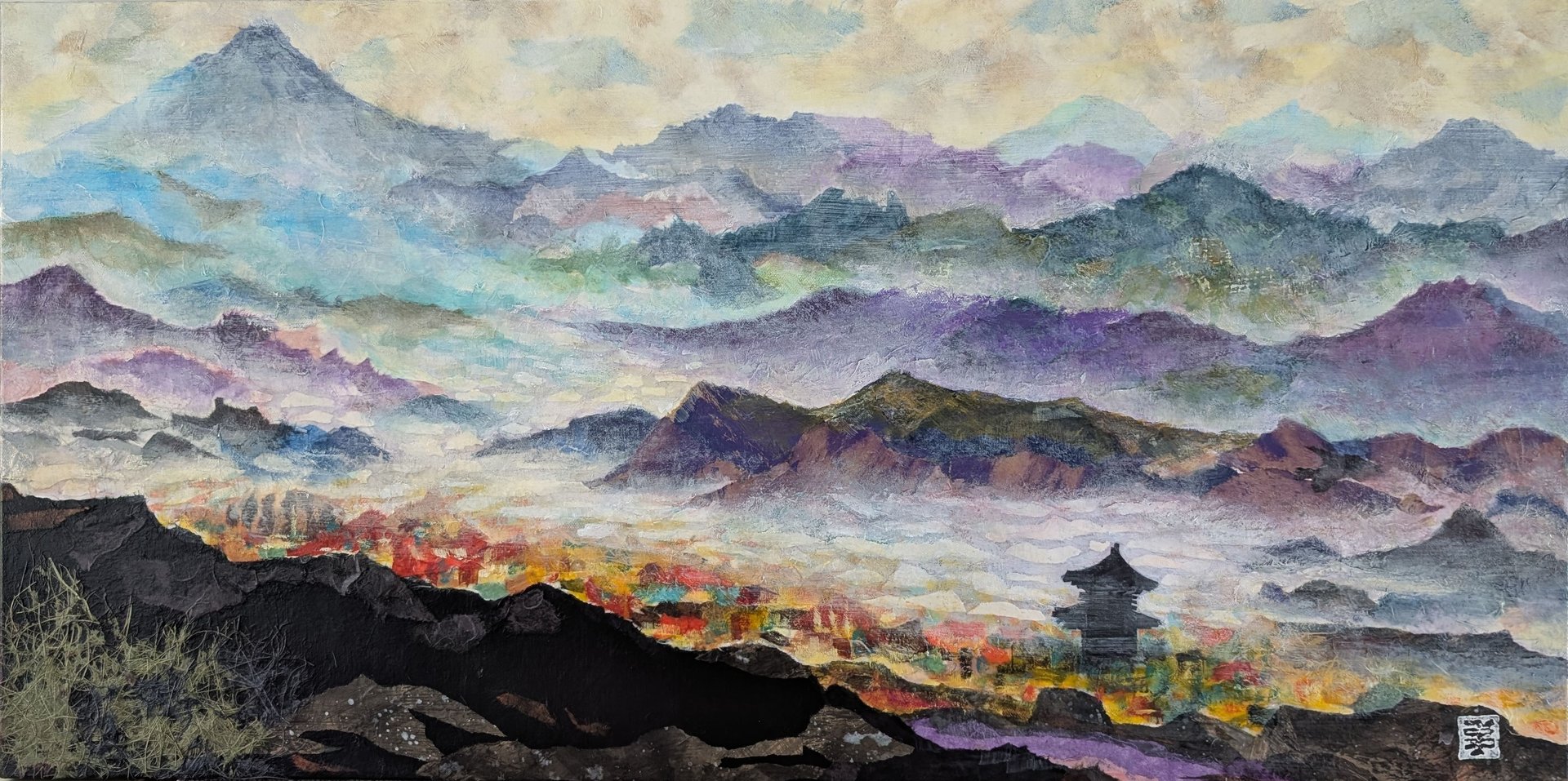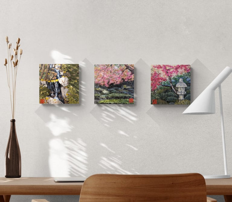 As part of my mentorship at Art on 30th, I was tasked to create a series of art pieces. This collection is a culmination of my time in Japan from 2023. This work portrays the beautiful sites I saw during my visit with my husband. Recently, I have been interested in collage and mixed media. I challenged myself to use unconventional materials such as handmade paper, washi, string, and natural fibers.