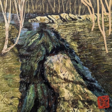 Acrylic and handmade paper collage on a 1.5" deep canvas
