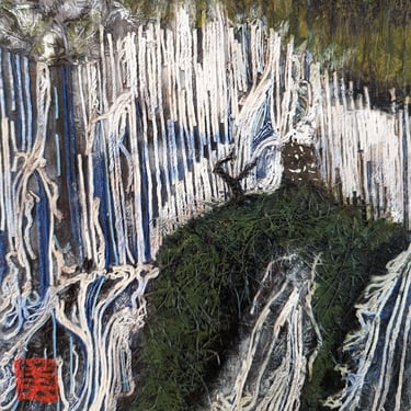 Acrylic, washi paper, rope, and string on a 1.5" deep canvas