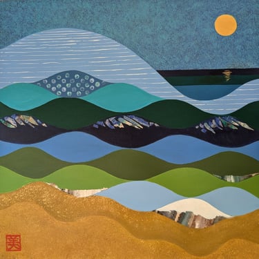 Acrylic, washi paper, handmade paper on wood panels
