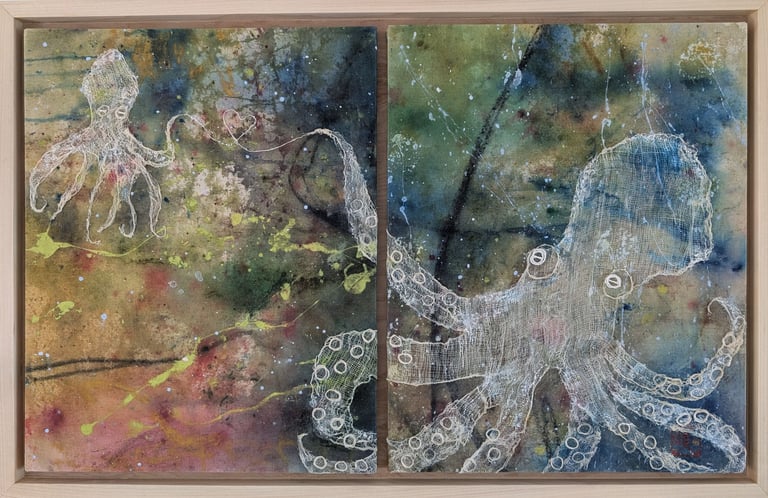 Mixed Media on two raw canvases